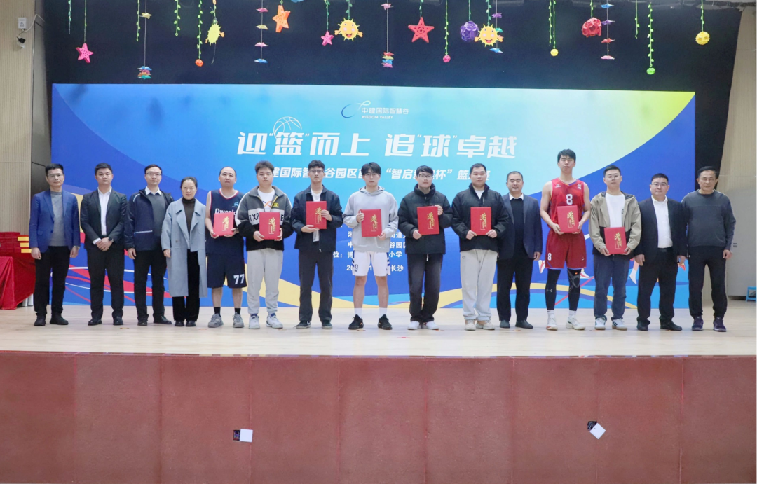 中建國際投資(湖南)有限公司黨委書記、總經理、中建國際智慧谷園區黨委第一書記謝海斌,中建國際投資(湖南)有限公司副總經理陳柳汀,中建國際投資(湖南)有限公司副總經理李強,長沙中建國際發展有限公司總經理、中建國際智慧谷園區黨委書記胡素蘭,湖南湘江新區岳麓街道黨建辦主任、中建國際智慧谷園區黨委副書記高嵩,岳麓山大科城管委會黨建專干、中建國際智慧谷園區黨委委員何朝紅出席閉幕式,并為獲獎球隊頒獎。各參賽企業負責人、代表隊運動員等200余人參加,共同見證收官之戰的精彩時刻。