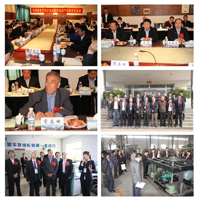 大噸位電磁攪拌器是我公司根據(jù)2009年山東省第一批技術(shù)創(chuàng)新項目計劃研制開發(fā)的新產(chǎn)品。為幫助企業(yè)進一步完善產(chǎn)品質(zhì)量,為用戶提供高性價比的產(chǎn)品,2011年4月23日臨朐縣經(jīng)信局在臨朐組織召開了產(chǎn)品國產(chǎn)化技術(shù)論證會,來自中國有色金屬加工協(xié)會、中國資源綜合利用協(xié)會、中科院電工研究所、中科院高能物理研究所、山東大學、濟寧學院、蘇州博能爐窯科技有限公司、中鋁山東分公司電解鋁廠、中色科技股份有限公司、河南中孚實業(yè)有限公司等十多單位的20多位專家和客戶代表參加了會議。與會專家考察了生產(chǎn)現(xiàn)場,聽取了研制單位的技術(shù)匯報,審查了有關(guān)資料,經(jīng)過質(zhì)詢討論,形成如下論證意見:
