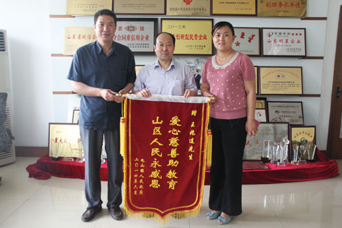 6月5日,九山鎮(zhèn)黨委委員、副鎮(zhèn)長(zhǎng)衣燕與九山鎮(zhèn)教管辦領(lǐng)導(dǎo)來(lái)公司為公司董事長(zhǎng)兼總裁王兆連送來(lái)錦旗,上面繡有“愛(ài)心慈善助教育,山區(qū)人民永感恩”,對(duì)王兆連董事長(zhǎng)表示感謝。