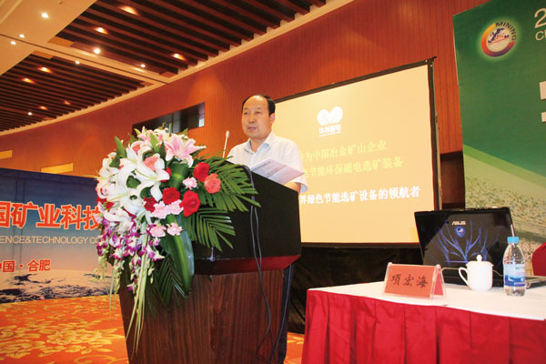 低溫超導(dǎo)磁體產(chǎn)業(yè)技術(shù)創(chuàng)新戰(zhàn)略聯(lián)盟理事長(zhǎng)、公司董事長(zhǎng)兼總裁王兆連在大會(huì)主席臺(tái)就座,并在大會(huì)作了題為《大型化磁電選礦裝備和國(guó)產(chǎn)化超導(dǎo)磁選技術(shù)新進(jìn)展》的學(xué)術(shù)報(bào)告。王兆連董事長(zhǎng)在報(bào)告中,結(jié)合當(dāng)前我國(guó)礦業(yè)發(fā)展形勢(shì),對(duì)我公司新型精選設(shè)備、提精降渣磁選機(jī)等創(chuàng)新產(chǎn)品進(jìn)行了重點(diǎn)推介。王兆連董事長(zhǎng)的報(bào)告得到了與會(huì)者的普遍歡迎并贏得了熱烈的掌聲。會(huì)間,我公司在特裝搭建的VIP展廳與年會(huì)的領(lǐng)導(dǎo)、專家和重大客戶進(jìn)行了深入的溝通、技術(shù)交流和洽談,對(duì)于企業(yè)形象宣傳和新產(chǎn)品推介,擴(kuò)大知名度和影響,促進(jìn)新產(chǎn)品營(yíng)銷(xiāo)推廣,達(dá)到了預(yù)期效果。