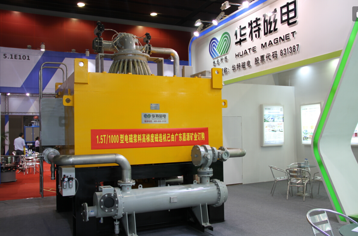 為參加本次展會(huì),我公司精心準(zhǔn)備了5.5T/300型低溫超導(dǎo)磁選機(jī)和1.5T/1000型電磁漿料磁選機(jī)兩臺(tái)工業(yè)用磁選機(jī),不遠(yuǎn)千里,歷時(shí)兩天從濰坊運(yùn)至廣州展會(huì)現(xiàn)場,成為本次展會(huì)上磁選除鐵裝備的最大亮點(diǎn)。