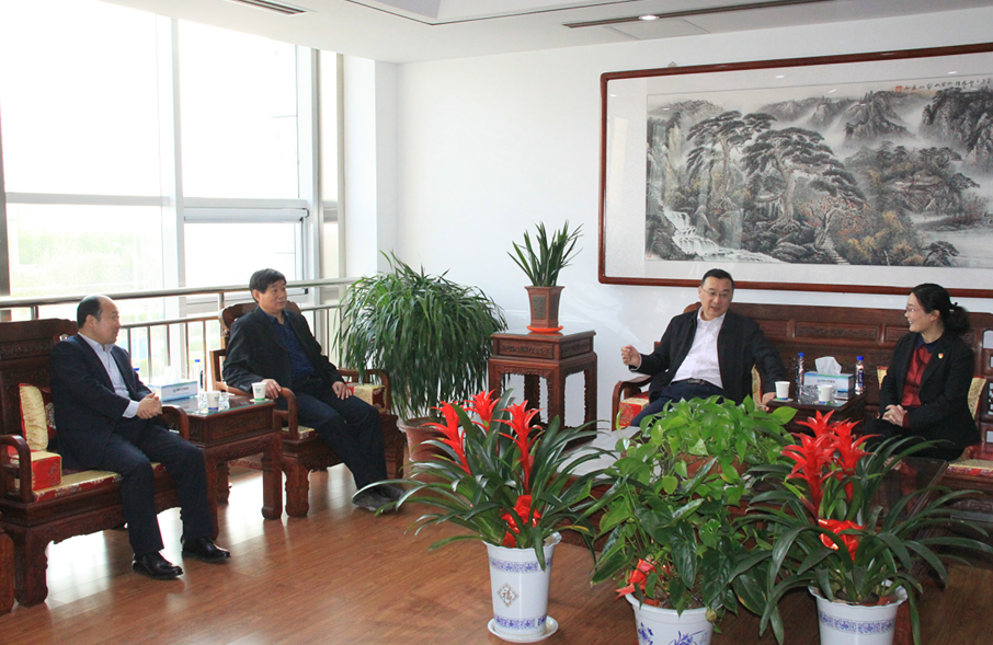 伊繼文主任一行同王兆連董事長在公司接待室展開深入交流