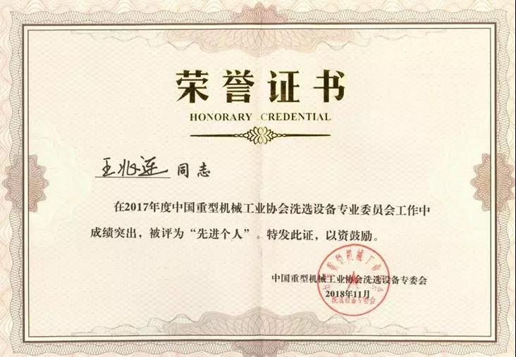 中國重型機(jī)械工業(yè)協(xié)會(huì)洗選設(shè)備專業(yè)委員會(huì)副理事長(zhǎng)、鎮(zhèn)江電磁設(shè)備廠有限責(zé)任公司董事長(zhǎng)楊鋼宣讀了2017年度優(yōu)秀單位及優(yōu)秀協(xié)會(huì)工作者的表彰決定,山東華特磁電科技股份有限公司被評(píng)為“2017年度先進(jìn)會(huì)員單位”,董事長(zhǎng)王兆連被評(píng)為“先進(jìn)個(gè)人”。