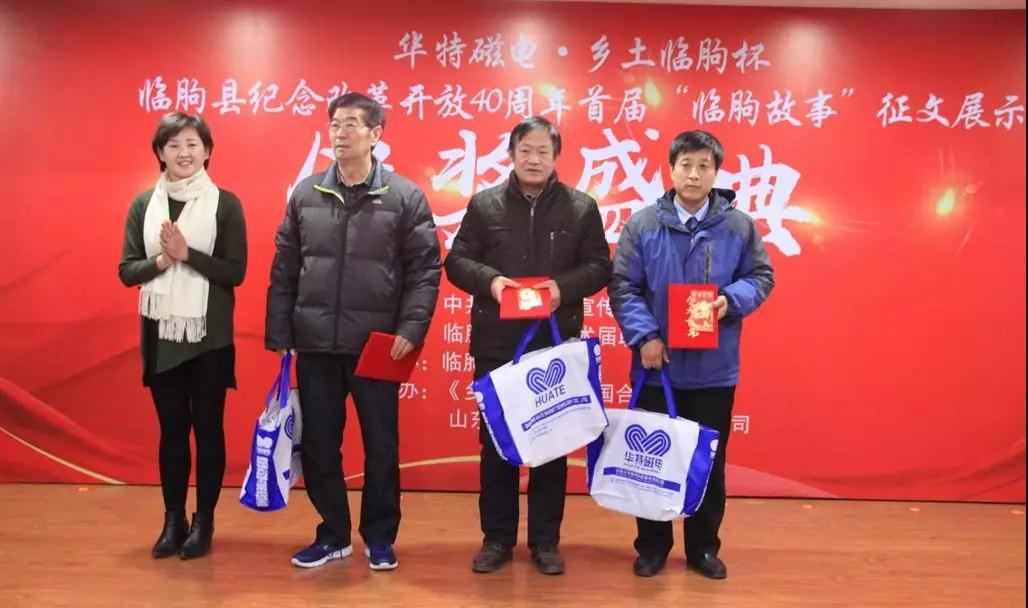 2018年12月29日上午,慶祝華特磁電25年華誕系列活動之五--“鄉(xiāng)土臨朐.華特磁電杯”紀(jì)念改革開放四十周年“臨朐故事”征文大賽頒獎典禮,在公司華特磁電多功能會議廳隆重舉行。