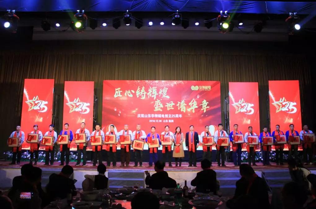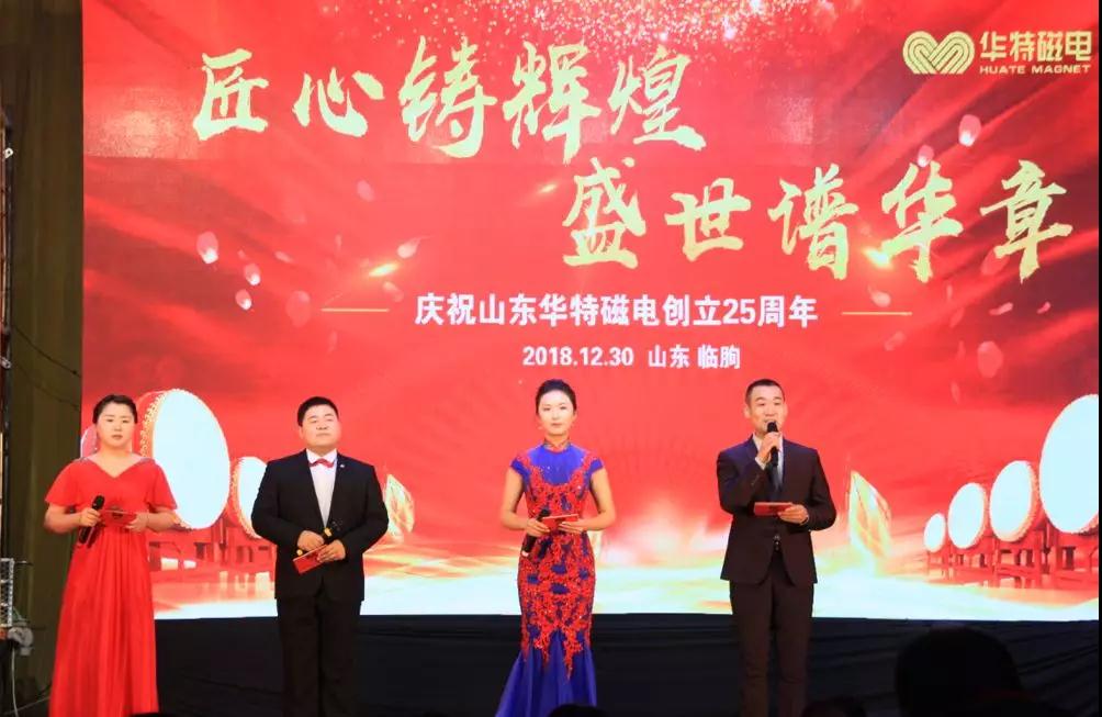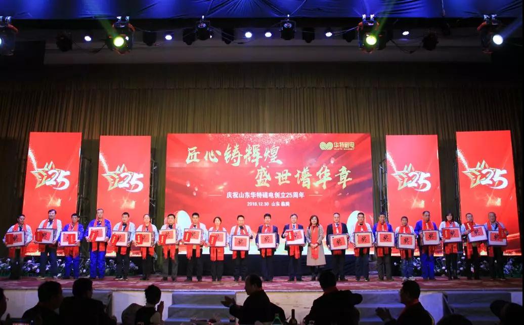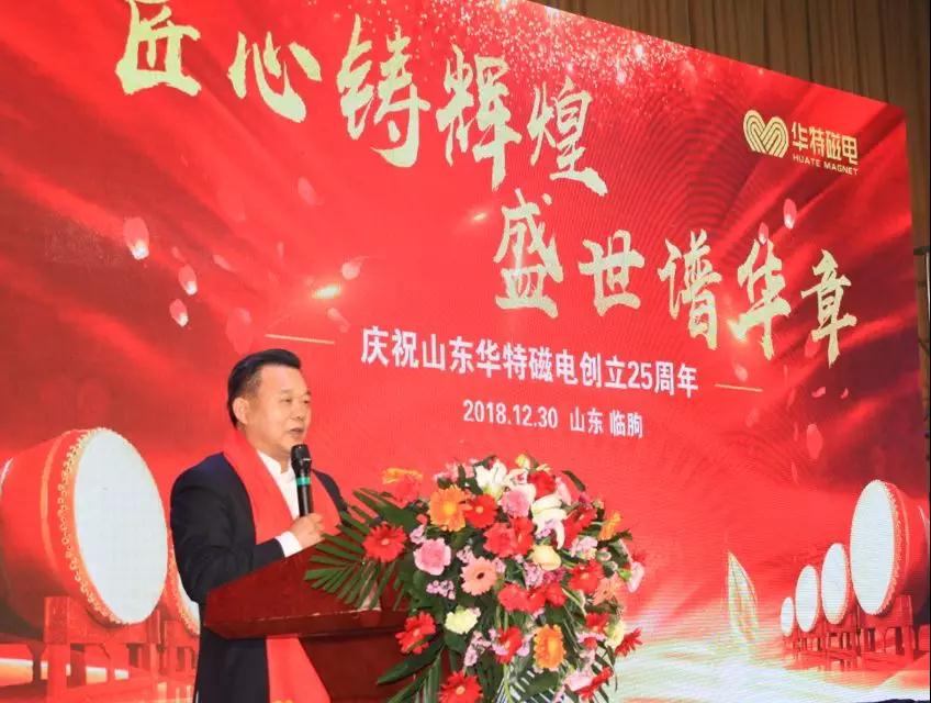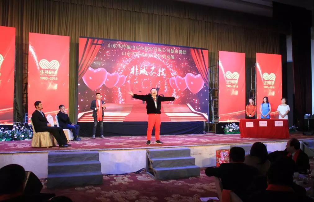 12月30日上午,山東華特磁電科技股份有限公司迎來了建企二十五周年慶典,臨朐經(jīng)濟開發(fā)區(qū)管委會主任、城關街道黨工委書記白文玉,經(jīng)濟開發(fā)區(qū)管委會副主任、街道黨工委委員尹德忠,華特公司董事長兼總裁王兆連、常務副總裁劉風亮、高級副總裁劉梅等領導與全體員工相聚臨朐攬翠湖溫泉度假村,一起回顧二十五年風雨征程,共同感受二十五載創(chuàng)業(yè)輝煌。
