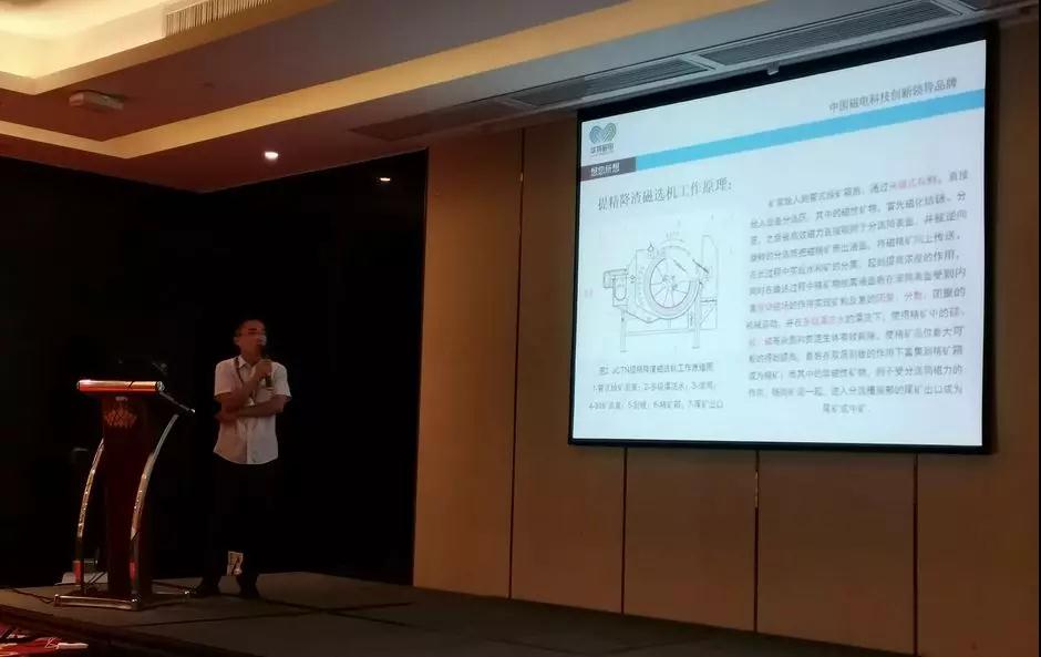 華特公司高級(jí)選礦工程師安峰文作為特邀嘉賓,在本次大會(huì)上作《新型節(jié)能環(huán)保磁電選礦裝備的研究與應(yīng)用》的主題報(bào)告,綜合性地闡述了當(dāng)前國內(nèi)外超細(xì)粒級(jí)礦石加工利用現(xiàn)狀,并向與會(huì)人員詳細(xì)介紹了華特選礦裝備的研發(fā)與應(yīng)用情況,引起現(xiàn)場(chǎng)與會(huì)人員的熱烈反響。